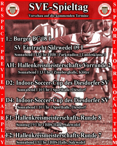 Die Vorschau auf das kommende Wochenende des SV Eintracht Salzwedel 09.